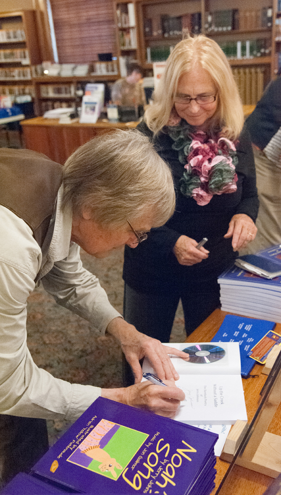 I hope you enjoy reading Up the Creek Without a Saddle and Noah’s Song and listening to the CD albums as much as I delighted in writing the poems and teaming up with Jon Gailmor and Pete Sutherland on our poems-set-to-music collaboration. And I hope you will enjoy additional books I’m working on—a mystery novel, another children’s picture book, a humorous book, and poetry books.”